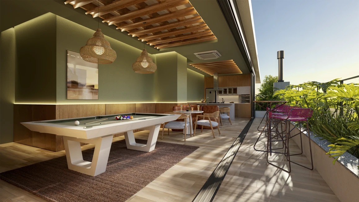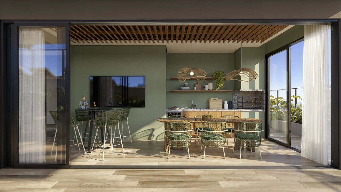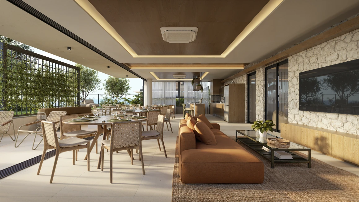 Ao mesmo tempo, entendemos que quem escolhe viver no Campeche também valoriza a praticidade, a mobilidade e a infraestrutura de uma grande cidade. Nosso foco esteve em desenhar ambientes que complementam a vida cotidiana de forma orgânica — espaços que não apenas servem a funções práticas, mas que também convidam à convivência e ao relaxamento.